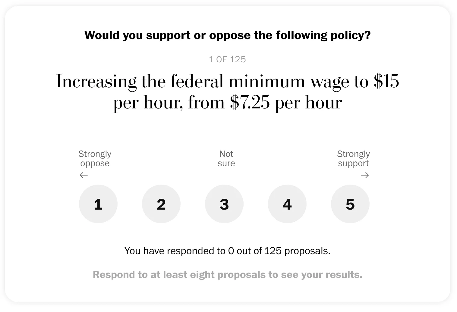 At the end of the article, we challenge readers to give their preferences on all 125 policy proposals. A great number of readers (more than 1.5% of those who engaged at the beginning) gave their answers: