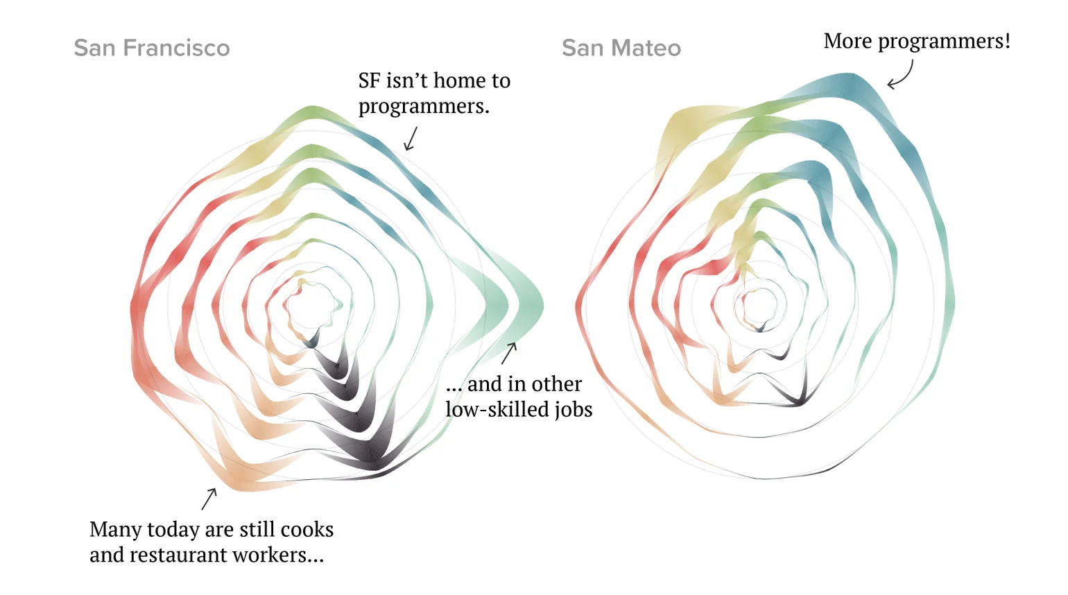 View project ↗San Francisco was one of the first destinations for Chinese immigrants to the US. They have always come to work, but the jobs they took have changed. I looked into the occupation data of Chinese immigrants in the Bay Area and drew a changing story.